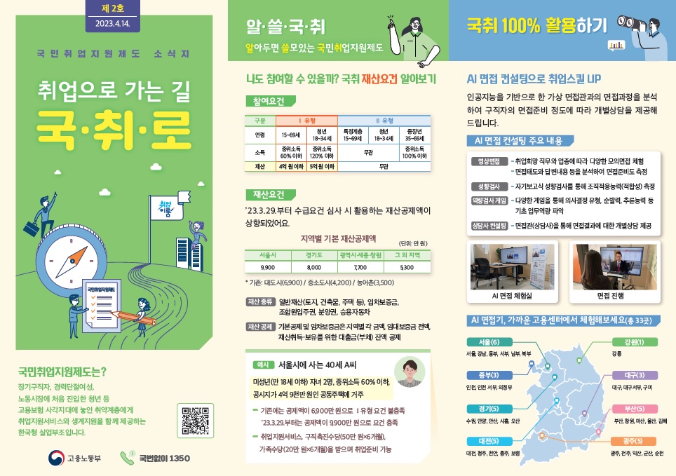 국민취업지원제도에 대한 문의는 고용부 콜센터(1350)를 통해 가능합니다.