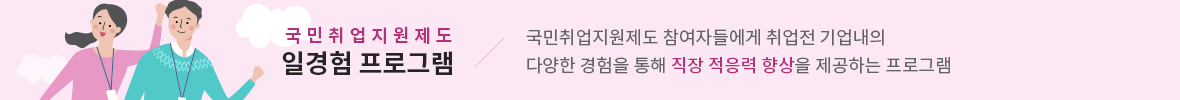 국민취업지원제도 일경험프로그램은 취업 전 다양한 직무에서 일경험을 쌓을 수 있도록 지원하며, 구직의욕 고취 및 직무 능력 향상을 통한 취업 가능성을 제고하는 취업지원 프로그램입니다.