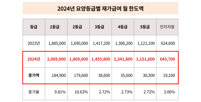 - 시설급여: 노인요양시설, 노인요양공동생활가정 입소