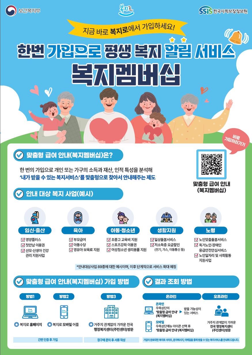 더 많은 정보가 필요하시다면 복지로 홈페이지를 방문하시거나, 가까운 행정복지센터에 문의해주세요. 여러분의 든든한 복지 파트너, 복지멤버십과 함께하세요!