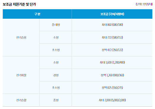 지원차량 : 전기승용, 전기화물, 전기승합