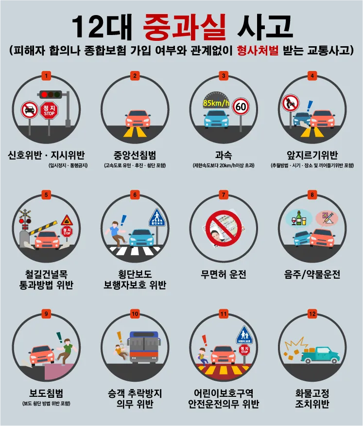 반면, 12대 중과실 사고의 경우: