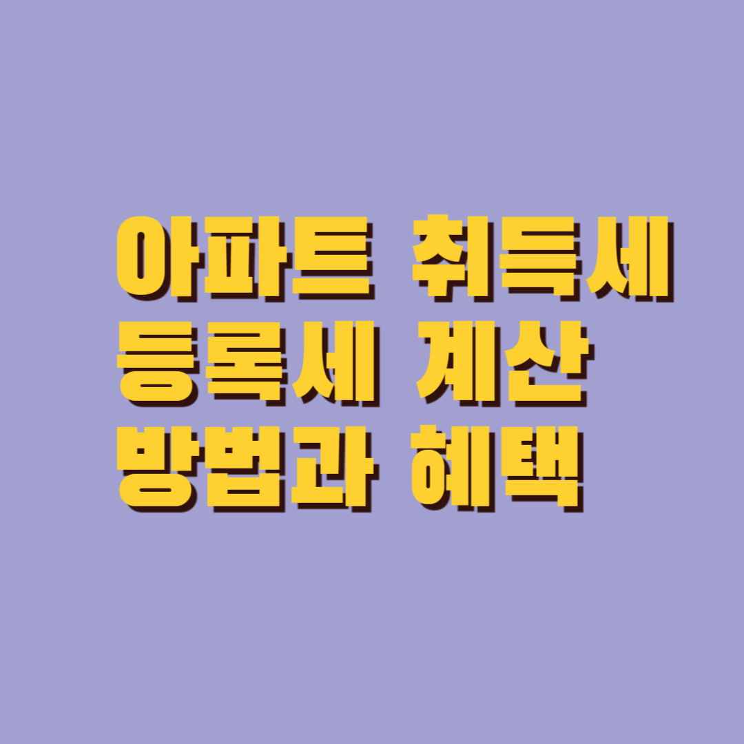 아파트 취득세 등록세는 아파트를 취득할 때 지불해야 하는 세금으로, 많은 사람들이 이를 계산하기 위해서는 다소 복잡한 절차를 거쳐야 합니다. 이 글에서는 아파트 취득세 등록세를 계산하는 방법과 취득세 감면 혜택에 대해 자세히 알아보겠습니다.