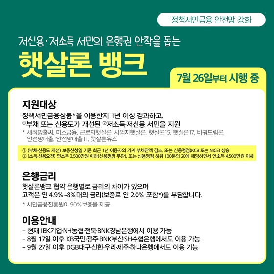 2.1 햇살론 - 서민을 위한 맞춤형 대출
