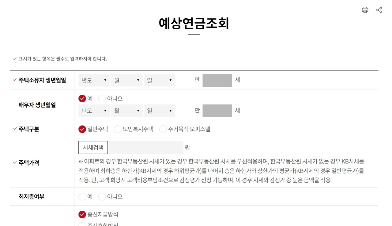 주택연금 수령액 예상