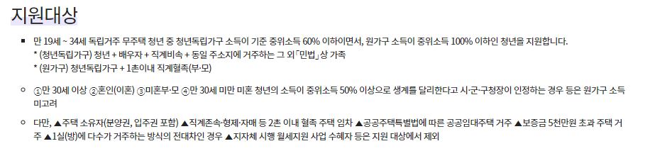 청년전월세득별지원 제외 대상