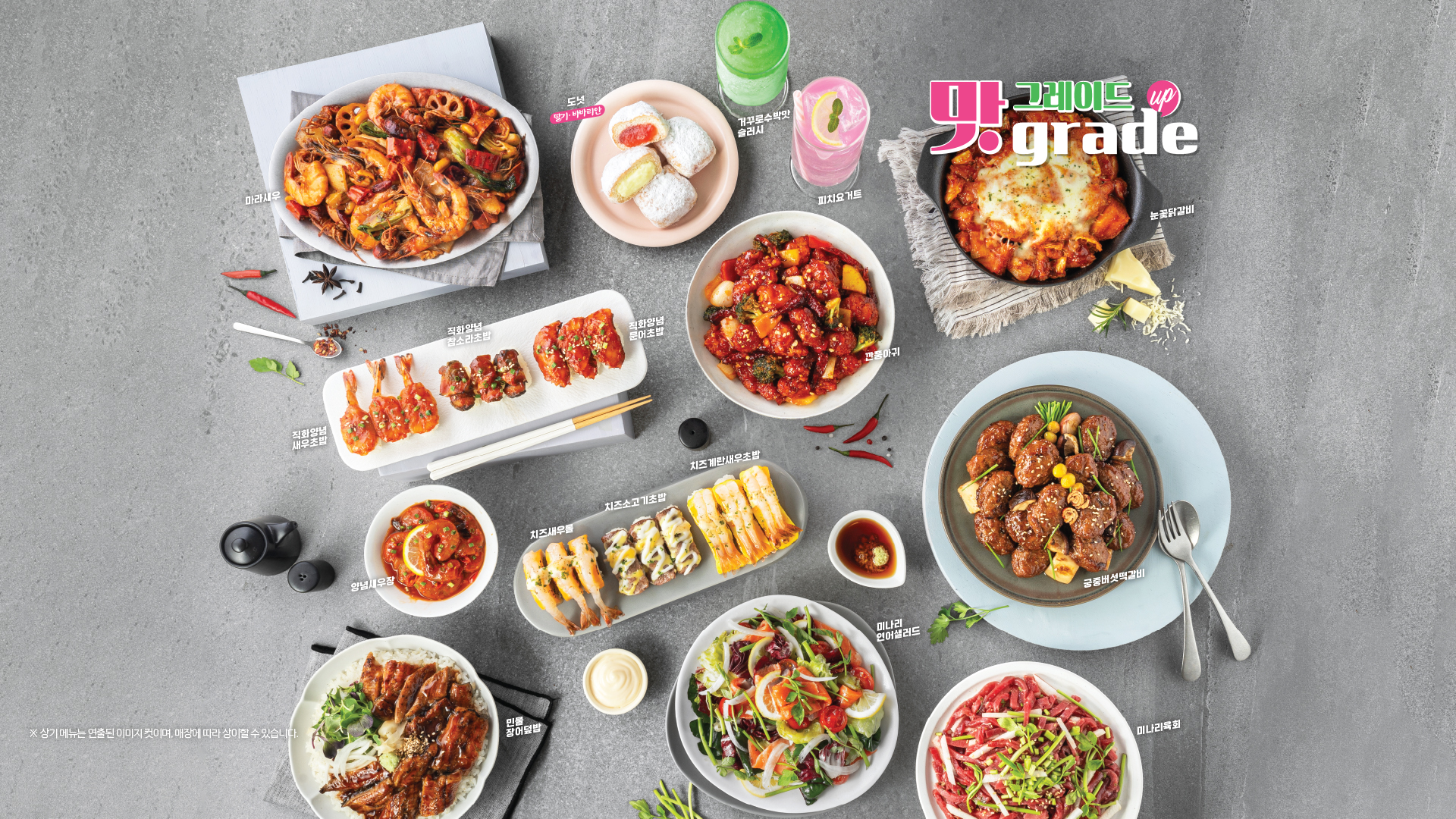 - 핫디쉬: 불고기, 크림 파스타, 야끼우동, 깐쇼새우 등 따뜻한 요리