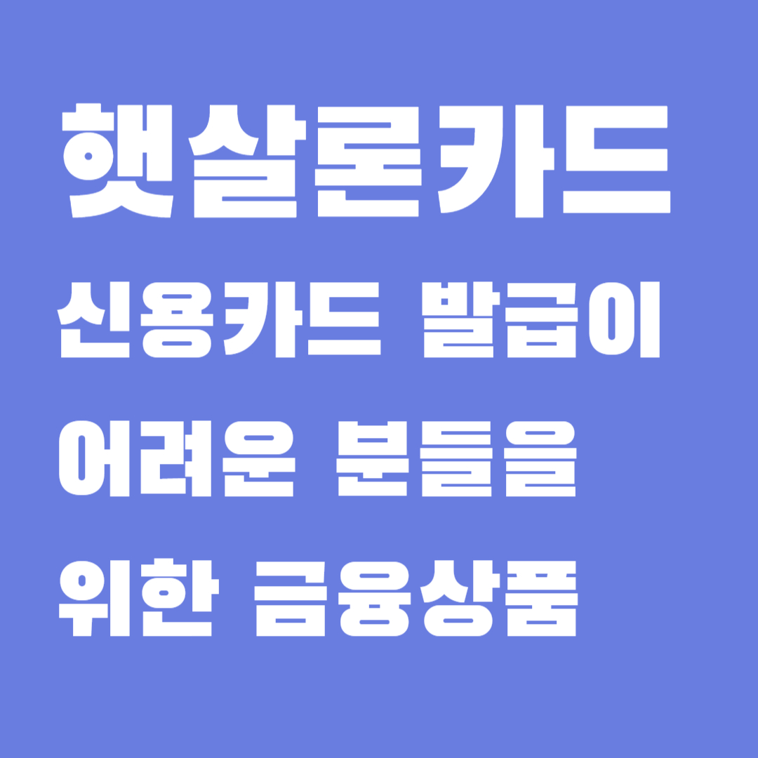햇살론카드는 저신용자 분들을 위해 발급되는 신용카드입니다. 연 가처분소득 600만원 이상이면서, 신용평점이 하위 20% 이하인 분들이 대상입니다. 이용자는 햇살론카드 필수교육을 이수한 후, 최대 200만원의 보증한도를 받아 카드를 사용할 수 있습니다. 기간은 최대 5년이며, 이용한도는 보증한도에서 20만원을 차감하여 부여됩니다.