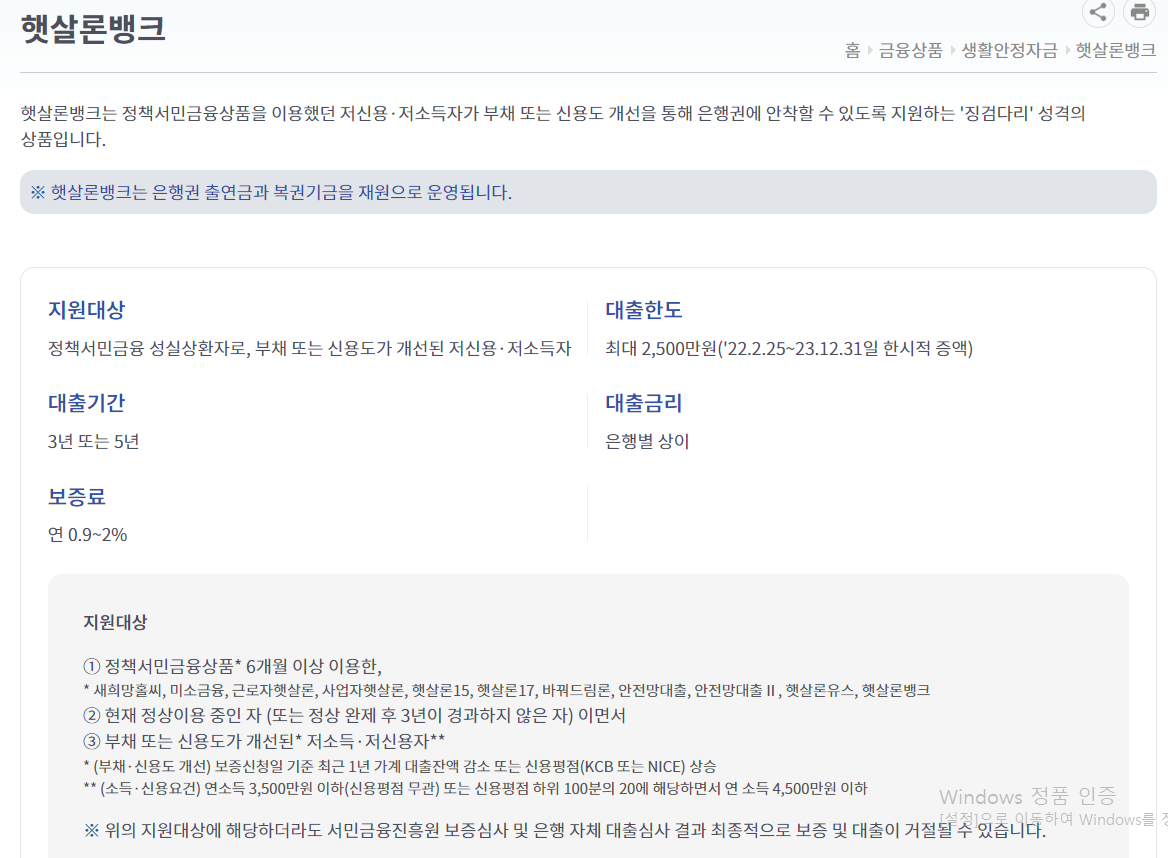 2023.06.27 - [정책] - 서민금융 상품 소개: 최저신용자 특례보증