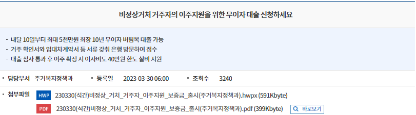 오늘은 최대 5000만원 대출을 10년 무이자로 받을 수 있는 정부 지원 사업에 대해서 말씀드리려고 합니다. 국토교통부 주거안정 실현방안 등에 대한 후속 조치로 지하층 비상 정상 거쳐 거주자의 주거상황 지원을 위해 비정상 거쳐 이주지원 버팀목 전세 자금을 4월 10일부터 접수한다고 밝혔습니다.