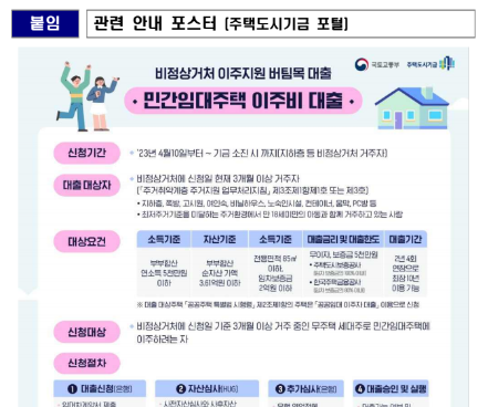 이사 이주비도 40만 원 한도 내에서 실비로 지원을 받을 수 있다고 합니다.