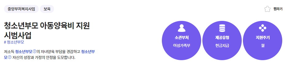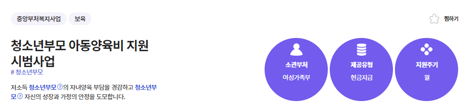 청소년부모 가구의 자녀에 대한 정부의 아동양육비 지원을 통해 청소년부모의 자녀양육 부담을 경감하고 청소년부모 자신의 성장과 가정의 안정을 도모하기 위한 정책입니다.