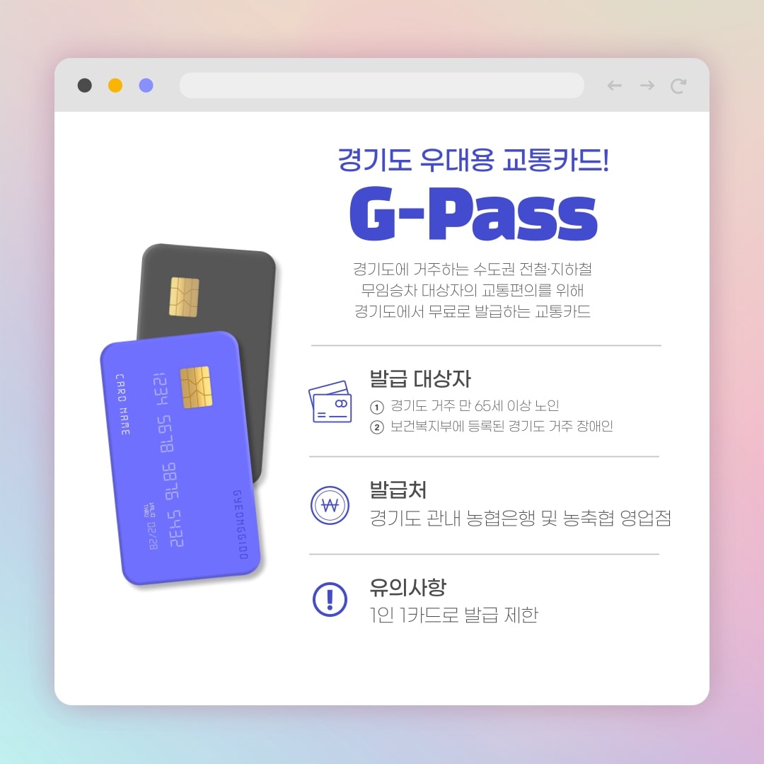 #G-Pass카드 #경기도교통복지 #무임교통카드 #경기도민혜택 #교통비절약 #실버복지 #장애인복지 #국가유공자혜택 #무료지하철 #교통카드신청 #경기도복지 #노인복지카드 #대중교통혜택 #교통복지 #스마트교통