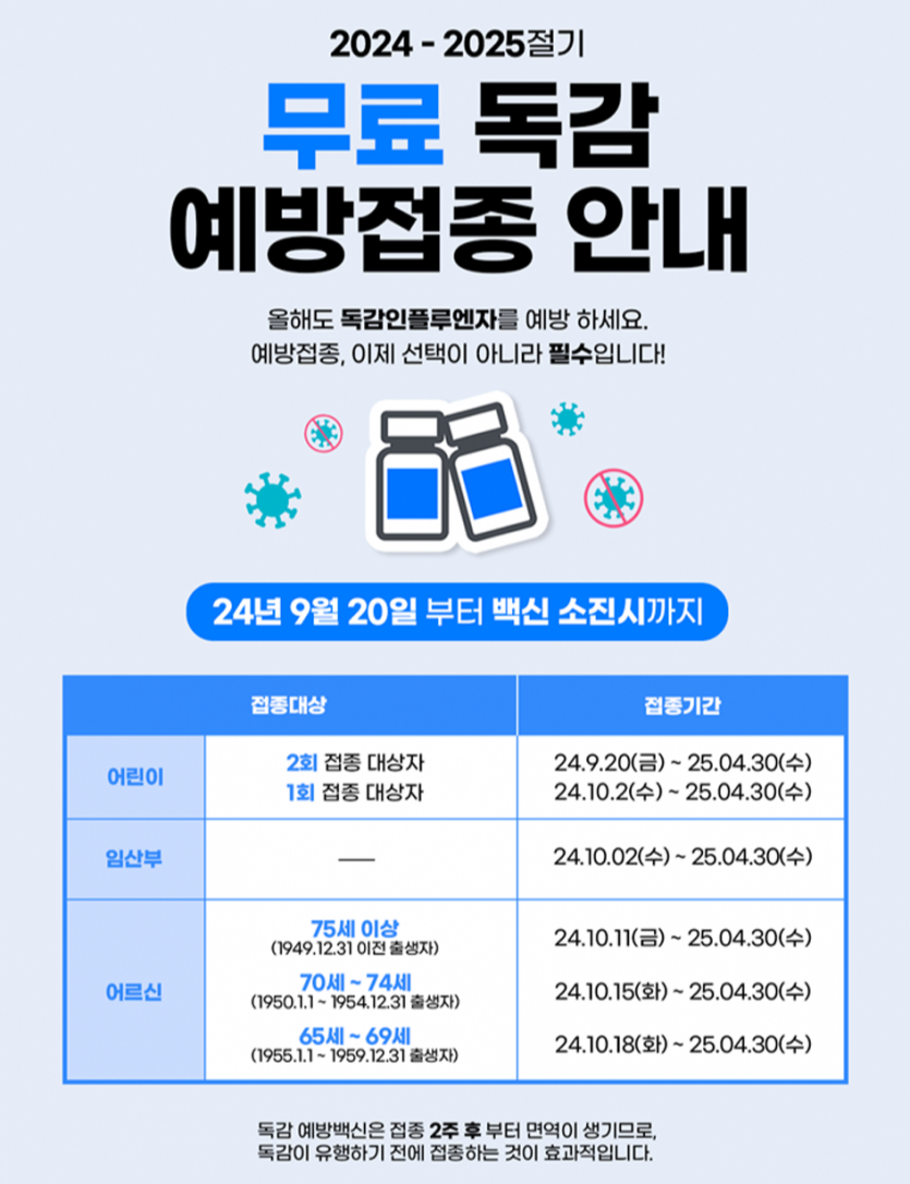 - 접종기간: 2024.10.2 ~ 2025.4.30