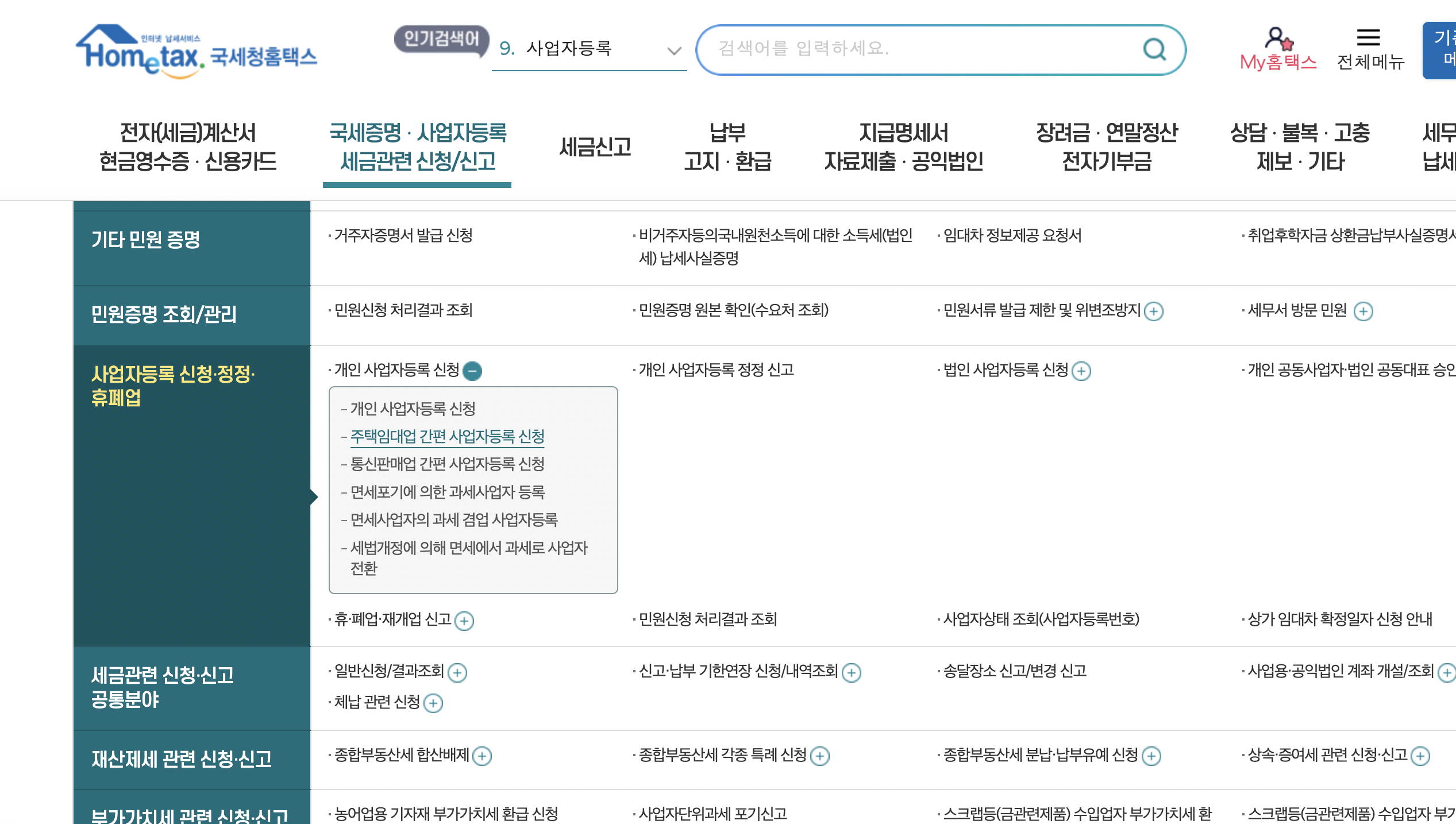 - 사업자등록 신청 메뉴 선택