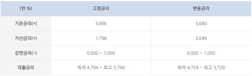 - 대출금리는 기준금리에 가산금리를 더하고 감면금리를 차감하여 계산됩니다.