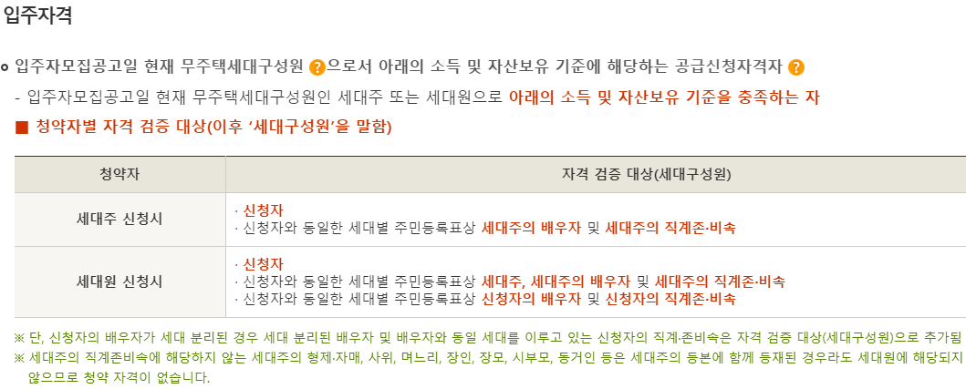 - 우선공급: 월평균 소득이 기준 중위소득의 100% 이하